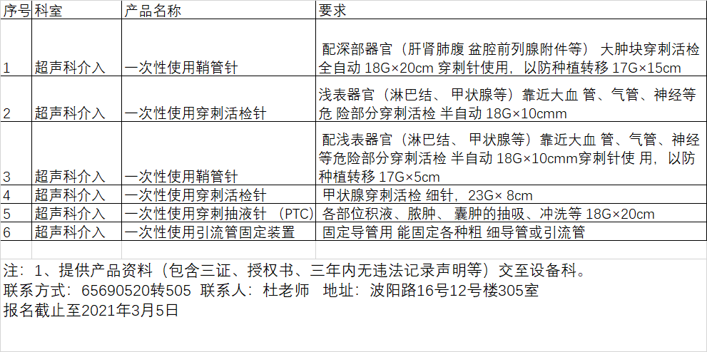 杨浦区中心医院超声科介入医用耗材待论证项目公示