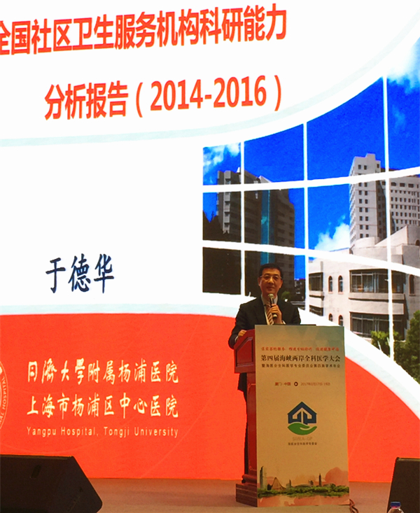 于德华院长参加第四届海峡两岸全科医学大会,并在此次大会上代表同济大学医学院全科医学系发布——全国社区卫生服务机构科研能力(前百名)分析报告(2016).