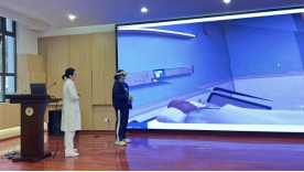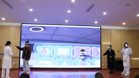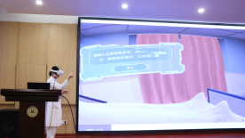 随后的活动是带领大家走进虚拟现实的世界,现场展示了造口护理VR实操系统,同学们戴上VR设备,仿佛置身真实病房,面对虚拟患者进行造口护理操作练习,在王静主任的鼓励下,多位同学踊跃参与、亲身体验。
