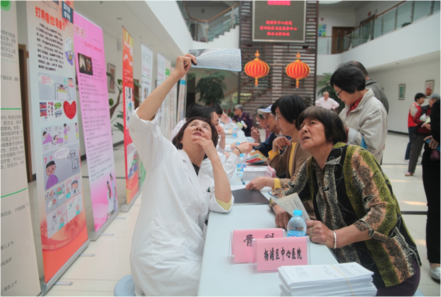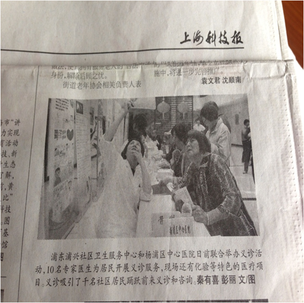 照片拍摄于:2015年5月7日,母亲节的前三天,当天我院与浦兴社区卫生服务中心在浦兴社会文化活动中心联合举办了“圣心关爱·感恩母亲节,健康进社区”义诊、咨询活动,我院共派出十一名医疗志愿者,服务浦兴社区居民200余人次。照片中这位是我院骨科黎晓华主任,她面前这位是一个腱鞘炎很严重的老阿姨,常年的劳动、家务让她的双手无法平展,只能保持手指弯曲的状态长期被疼痛折磨,也让她在生活中遇到很多阻碍,她也曾在浦东四处求医,前两天在居委会看到了我院专家到浦兴社区开展义诊活动的公告,抱着一丝希望带着各类检查报告早早的来到义诊现场。我院黎晓华主任仔细查看患者的各类检查报告,为患者详细分析病情,告知患者专家门诊时间和联系方式让患者能够直接与她联系。她的细心和耐心让老阿姨倍感亲切,前来咨询的很多居民对我院的专家的服务态度和医疗技术都表示满意。我们用相机记录下来的只是所有义诊活动中的冰山一角,我们在外义诊活动中像黎晓华主任这样一丝不苟为患者服务的医护人员有很多很多,许多的临床医护人员利用出夜班和休息时间参加义诊、咨询、讲座等服务社区居民的志愿活动,他们带着我院的特色医疗技术走进社区贴近居民,为前来咨询的居民答疑解惑。我们的义诊咨询活动不仅仅限于本区,我们通过这次在浦兴社区文化活动中心的联合义诊咨询活动,在浦东地区提高了我院的知名度,让浦东居民能够更进一步的认识我院专家了解我院的特色医疗技术,将我院的品牌形象树立在浦东居民的心中。在这里想借这张照片感谢各科室主任、临床医生、护士对我们社会服务中心工作的支持,感谢我院各科室临床医生和护士百忙之中抽空和利用休息时间参加义诊活动,感谢我院可爱可敬的医护人员奉献爱心服务广大社区居民。